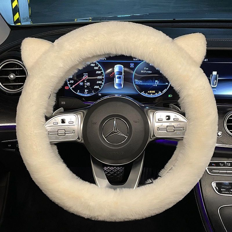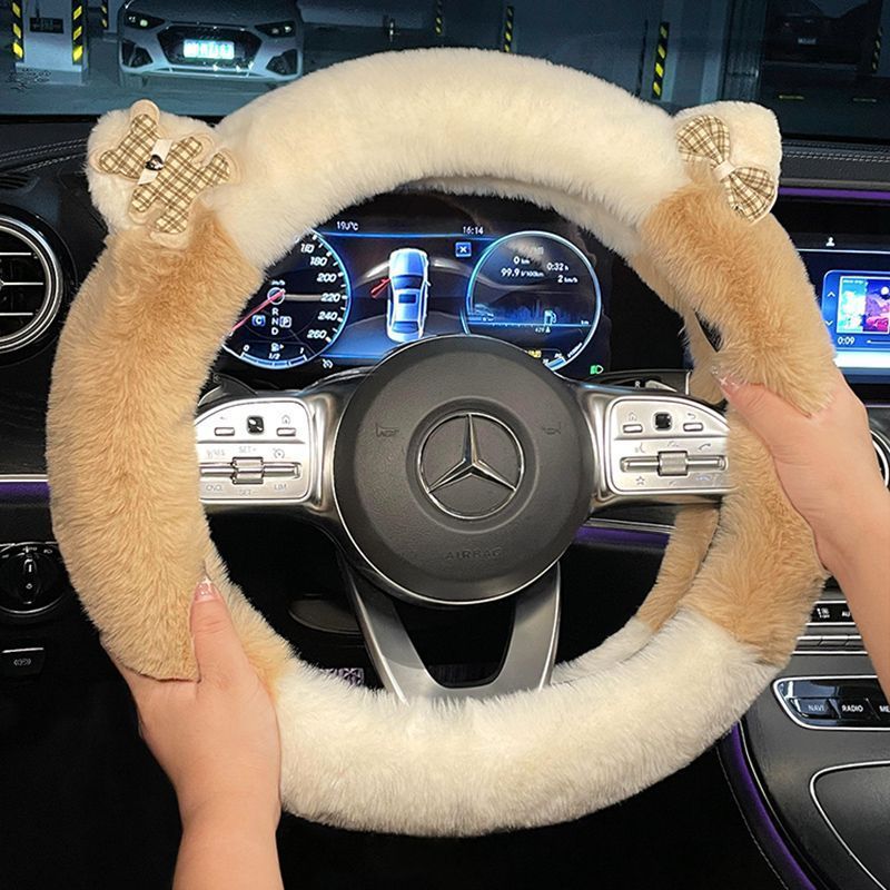 Color: [milk tea panda ears] Milk Tea white plush steering wheel cover, [milk tea rabbit cat ears] Milk Tea white plush steering wheel cover, [black panda ears] black and white plush steering wheel cover, [black rabbit cat ears] black and white plush steering wheel cover, [Milk tea panda ears] white plush steering wheel cover, [brown rabbit cat ears] Milk Tea white plush steering wheel cover, [milk tea cat ears] plush steering wheel cover, [creamy-white cat ears] plush steering wheel cover, black and white plush steering wheel cover